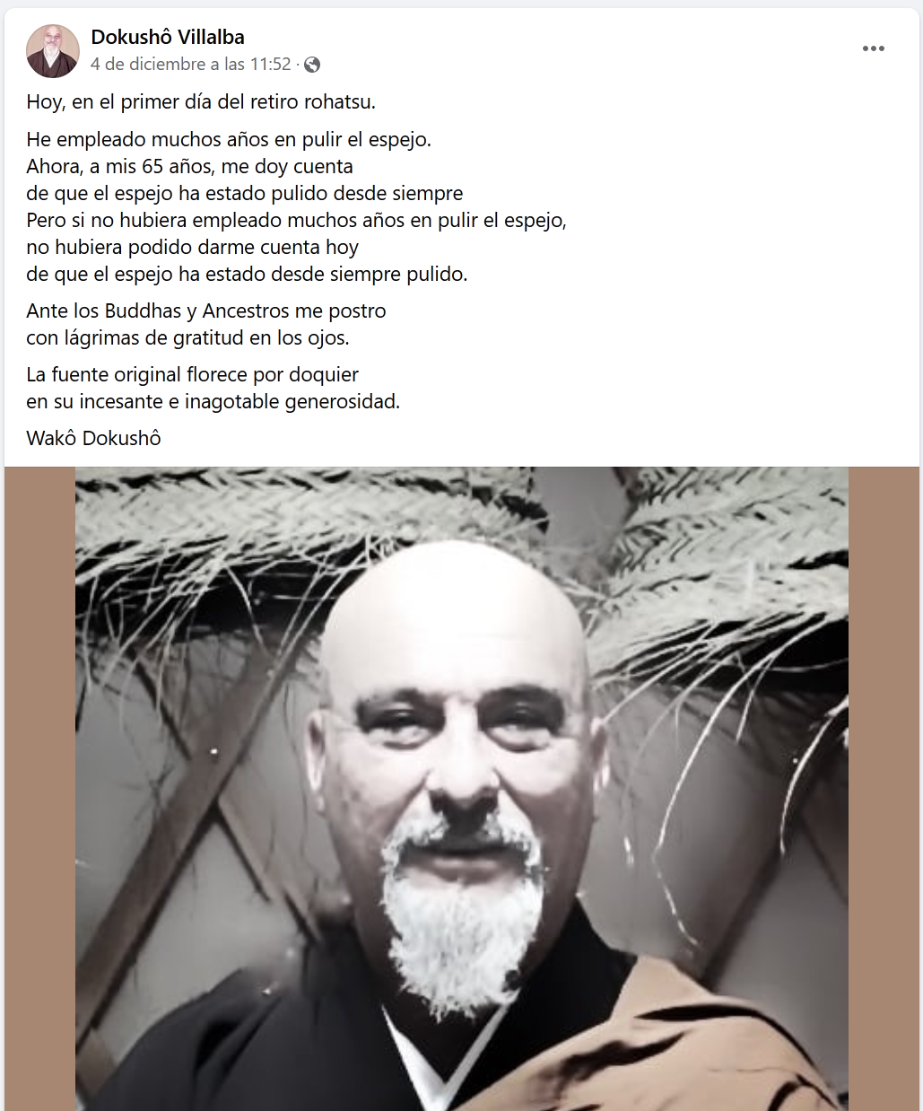 Me encuentro hace un momentín en el feisbuk (que apenas leo) esta fermosa poseía del Maestro Zen español Dokusho Villalba: