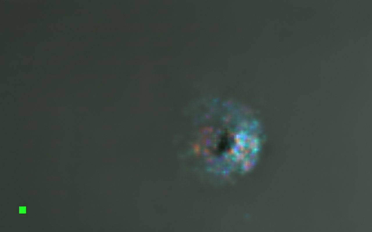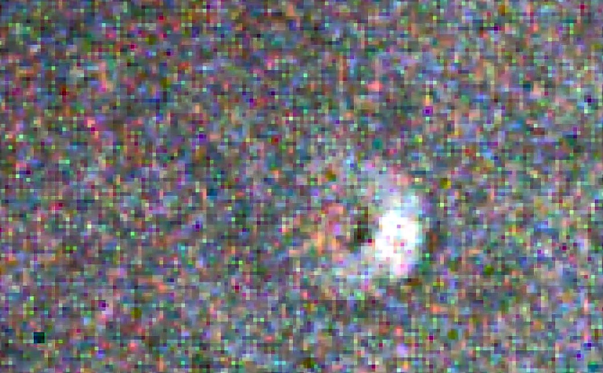 «Hoy observé 3I/ATLAS con mi telescopio solar, la única forma de apuntar tan cerca del Sol ahora mismo. Coordenadas exactas de la NASA: 2025-Oct-20 16:00 13:48 57.33 -08:25 54.3. Parece un escudo frontal calentado (el chorro) hacia el Sol y también una tenue nube extendida, similar a un pequeño cono, hacia la esquina superior izquierda. Sin cola. Un núcleo oscuro debido a la inversión de color. Imagen 100 % RAW, sin procesar. Los puntos de color deberían ser píxeles calientes y fríos de la cámara. Usaré un telescopio normal en noviembre, después del perihelio, para observarlo en directo.»